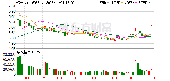 韩建河山(603616)今日涨停,全天换手率6.01%,成交额1.41亿元。龙虎榜数据显示,营业部席位合计净买入6643.19万元。
